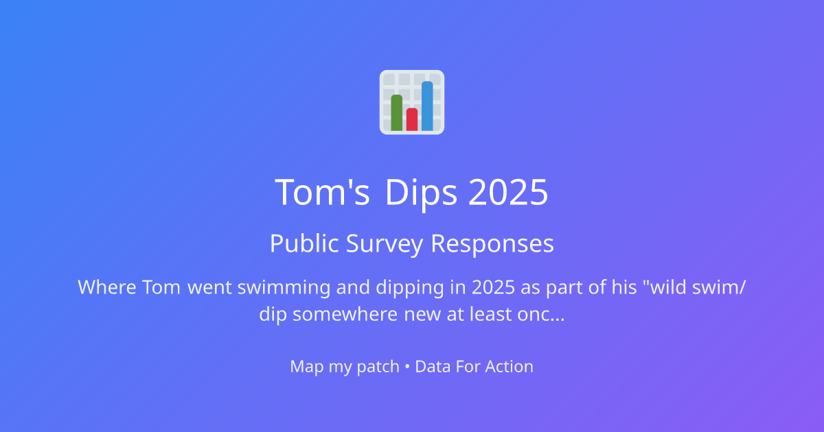 To celebrate getting nearly to the end of the year, I decided to map my dips! So I started putting them into my own tool - Map my Patch. In doing so I noticed some things I could improve in the app so spent a few hours adding some useful features like adding the mapbox search plugin to allow users to search on the map for things. Which is handy...but not that handy when most of the things you are searching for are bodies of water! So I added the OS Names api so you can search for lots of other things. I might even add the OS vector tile set on a later update so users can switch to an OS map for geographic features. Also added some sharing features and a few other bits like adding options for storing images and documents in the surveys - solve your own problems as they say! Anyway, here are my dips for 2025 (just December to go)